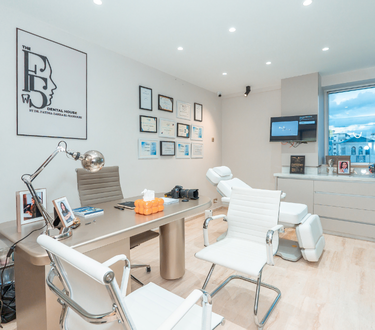 Dr. Fatima-Zahra El Mansouri exerce dans un cadre médical moderne, en proposant une prise en charge globale alliant soins dentaires, esthétique et harmonisation du sourire, avec une attention constante portée au confort, à la précision et au suivi du patient.